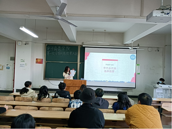 2021年11月12日,我院举办了第一届学生代表选举大会,分团委书记舒娟、分团委副书记王璇、各班级优秀学生代表共同出席了大会。