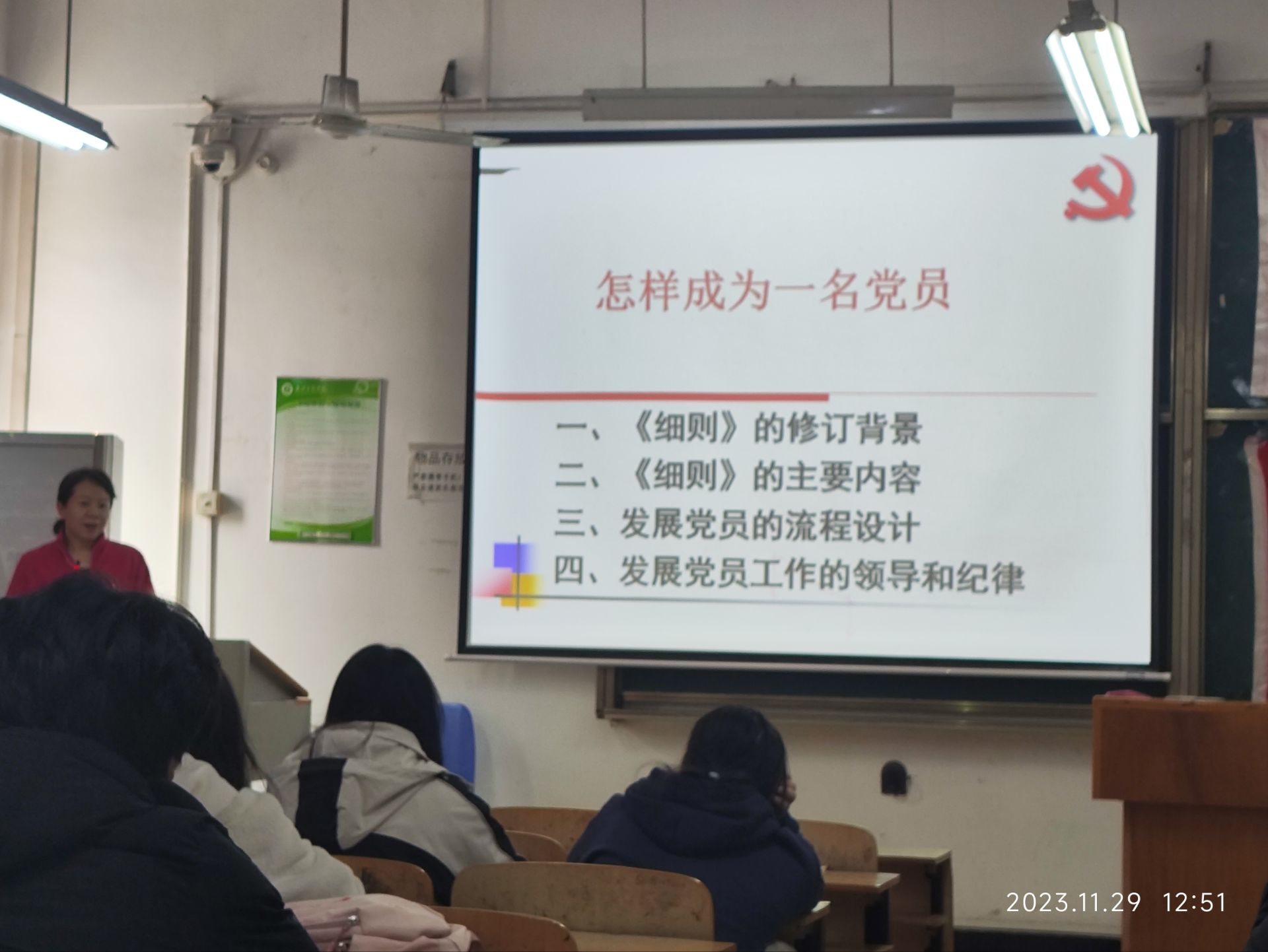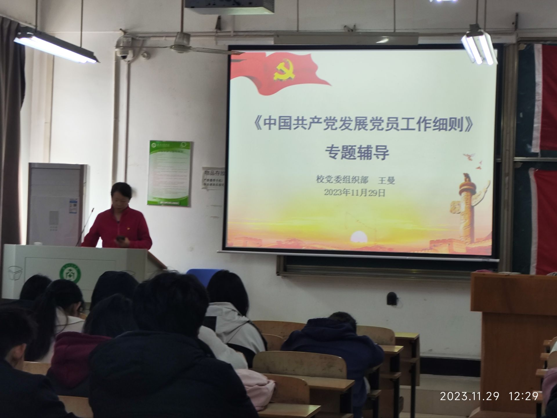 11月29日中午12:20,电子商务学院在综合楼204开展第十五期党校。来自校党组织部的王曼老师给党校的同学们进行《中国共产党发展党员工作细则》专题辅导。