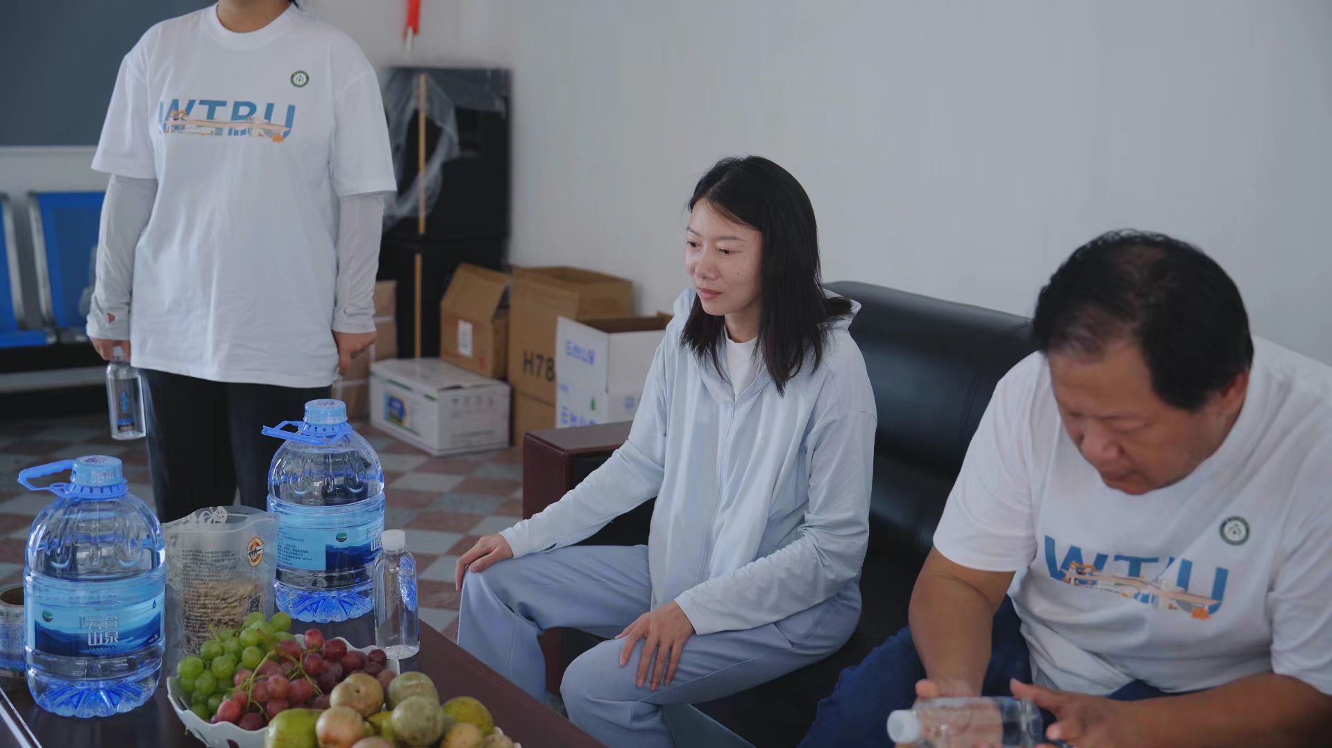 图为实践队观看矿泉水宣传片 摄影:秦明月