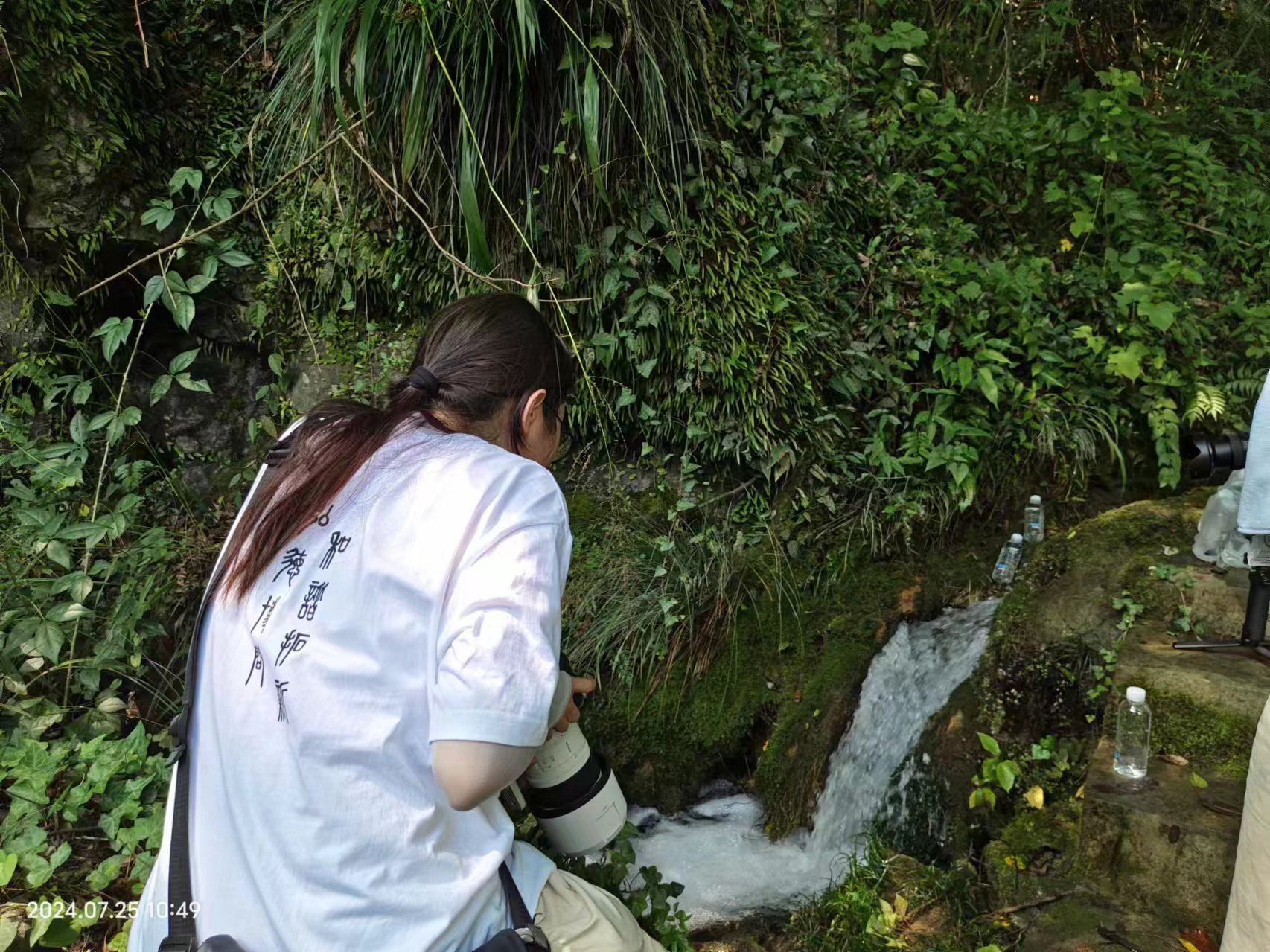 图为实践队队员拍摄矿泉水宣传片 摄影:李雨萱
