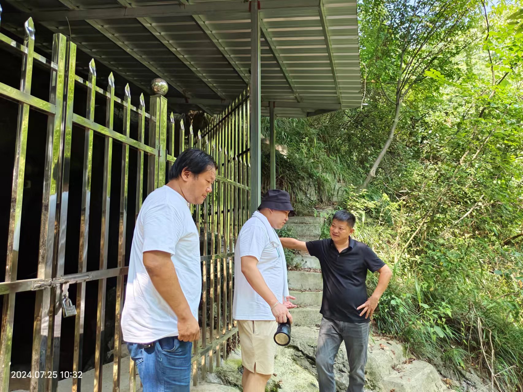 图为当地矿泉水企业负责人为实践队书记以及老师讲解取水地情况 摄影:李雨萱