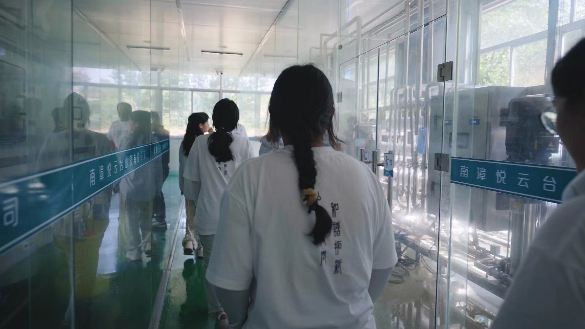 图为实践队队员参观矿泉水生产线 摄影:赵加敏
