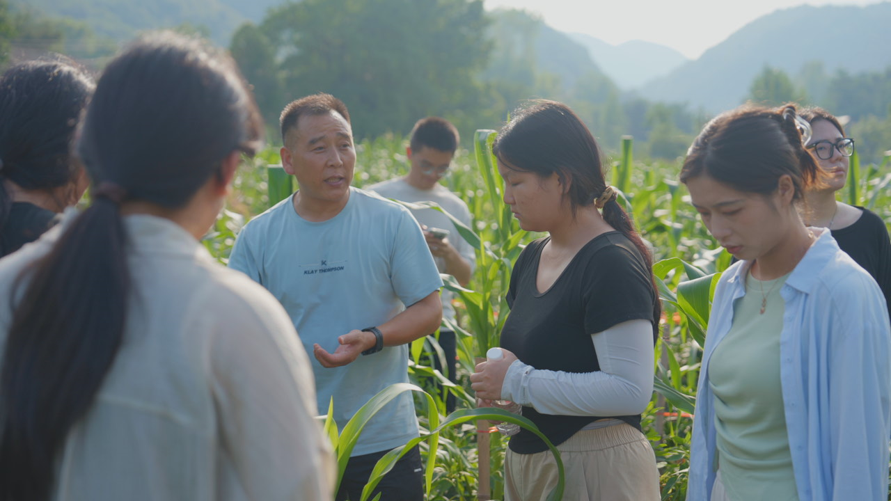 图为村长在朝天椒种植与实践队员们进行讨论 摄影:赵加敏