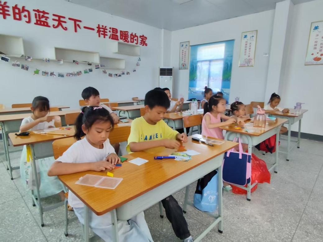 上午8点半,七巧板益智课率先开课。色彩缤纷的七巧板在孩子们手中翻转、组合,变幻出无穷的图案。志愿者耐心引导,鼓励孩子们发挥想象力与空间思维能力。小小的三角形、方形,在稚嫩的手指间跃动,不仅锻炼了手眼协调能力,更点燃了探索几何奥秘的热情。孩子们专注的神情和成功拼出图案后的灿烂笑容,是课堂上最美的风景。