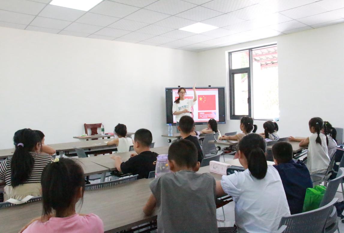 新闻中心讯(记者 郭怡含)恰逢“七七事变”纪念日临近,7月6日,BB贝博艾弗森官方网站电子商务学院“微笑蓓蕾”志愿服务队在随州市何店镇谢店村“爱心托管”暑期支教活动中,为当地儿童带来了一堂生动而深刻的红色文化主题教育课——《童心向党,爱国成长》。志愿者们通过寓教于乐的方式,引导孩子们铭记历史、传承红色精神,厚植家国情怀。