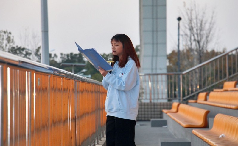 图为学生代表赵佳雪发言摄影:李美霖