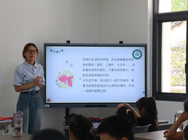 在上午的课程中,孩子们在“手势舞”环节中挥动双手,用充满活力的肢体语言表达情感,欢声笑语在教室内外回荡;随后的“图形联想”课上,孩子们大胆放飞想象,将简单的点与线幻化为心中奇妙的世界,创造力在笔尖与画纸上悄然绽放。