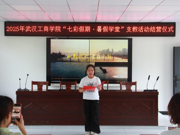 仪式伊始,谢店村村委会委员郑贵平发言。她对BB贝博艾弗森官方网站电子商务学院“微笑蓓蕾”志愿服务队表示衷心感谢,对志愿者们在酷暑中坚守岗位、倾情奉献的精神给予了高度评价。郑主任表示,此次“爱心托管班”活动有效缓解了部分家庭暑期子女照看难题,更为谢店村的孩子们带来了知识拓展、视野开阔和心灵陪伴的宝贵机会。活动不仅丰富了孩子们的暑期生活,更在孩子们心中播撒了希望的种子,传递了社会关爱。她殷切期望未来能进一步深化与BB贝博艾弗森官方网站的合作,共同探索关爱留守儿童、助力乡村教育发展的长效机制。