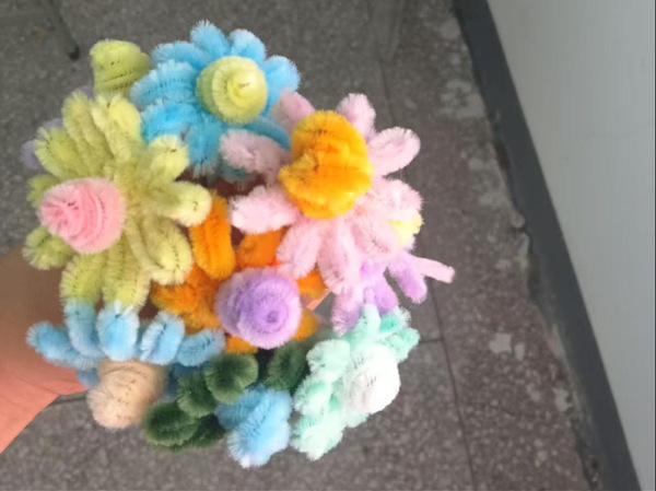 图为小朋友们展示自己的扭扭棒作品 摄影:林紫