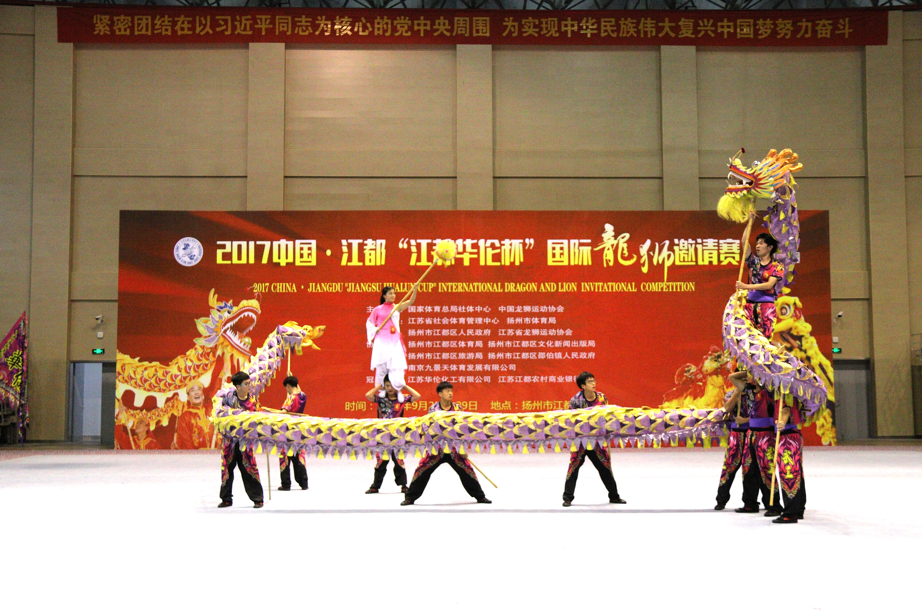 新闻中心讯(记者 王依林)9月29日,由国家体育总局社会体育指导中心、中国龙狮运动协会主办的2017中国•江都国际龙狮邀请赛在江苏省扬州市落下帷幕。来自加拿大、巴西、阿根廷、印度尼西亚、马来西亚等境内外19支队伍参赛。BB贝博艾弗森官方网站舞龙队在指导老师周龙的带领下,凭借的高水平动作完成度和完美的套路展示,在舞龙项目中斩获二等奖。
