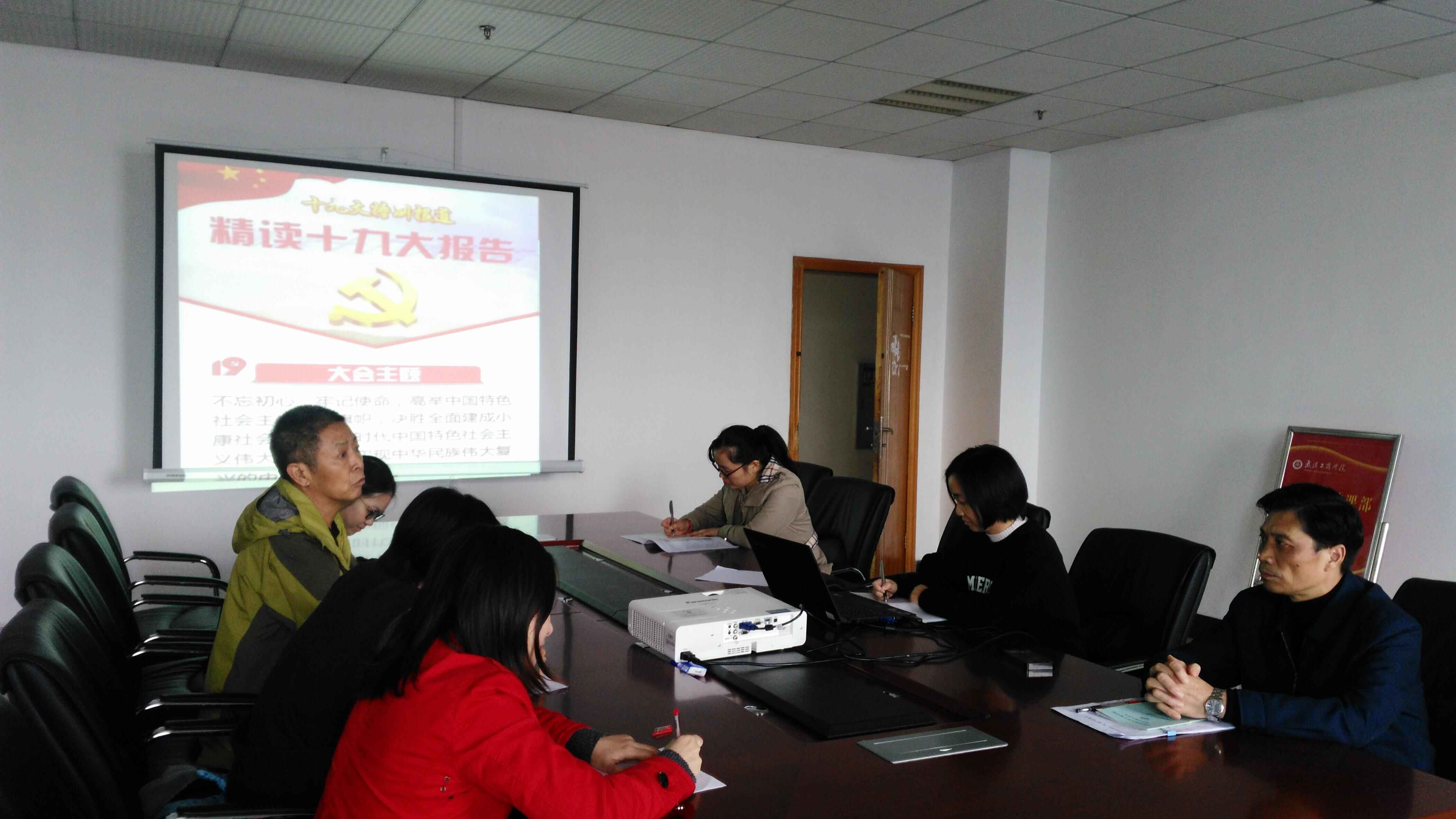 2017年10月19日下午两点在综合楼925室,我校公共基础课部思想政治理论课部组织部门全体教师集体学习和讨论了十九大报告。会上每位老师都认真地学习并记录了详细的笔记。其中李纪明老师在会上作了重要发言,他说:“我们作为思政课部的老师,尤其要深入地学习和研究十九大报告的内容,并且要把十九大报告的内容和精神能够贯彻到课堂上,让学生们也能从中有所学习和收获。”通过这次学习,思政课部的每位老师都受益匪浅,对十九大报告的内容和精神有了更深层次的理解。我们相信在党的领导下,在全国各族人民共同努力下,这个世纪中叶我国一定能够建成富强民主文明和谐美丽的社会主义现代化国家,全国人民都能过上幸福美好的生活。