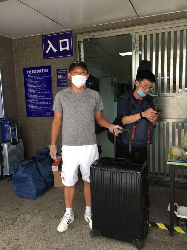 刘涛老师主动请缨赴武昌火车站接送凌晨4:30到站的毕业生,在把毕业生安全送抵校园后,他马上又返回到学生寝室帮助毕业生打包和转运行李。一天下来,他的身影穿梭在楼栋和校园内,大汗淋漓,满身湿透。“这都是作为老师应该做的事情,在疫情下能为学校、为学生做点力所能及的事感到十分荣幸”。