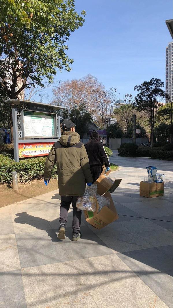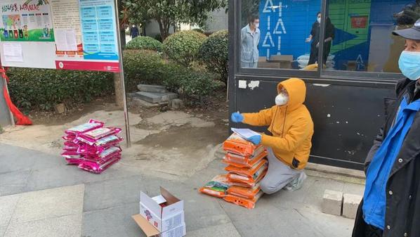 区业主的购物需求,然后和超市、食品公司对接。物资到了以后,我们就帮忙搬运、安排业主、收款、记账、分发物资等,经常要忙上两个小时。”朱威介绍道。