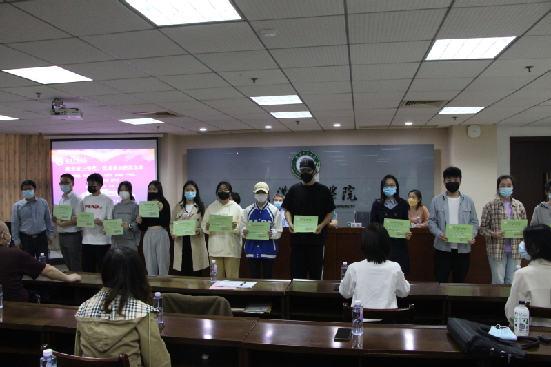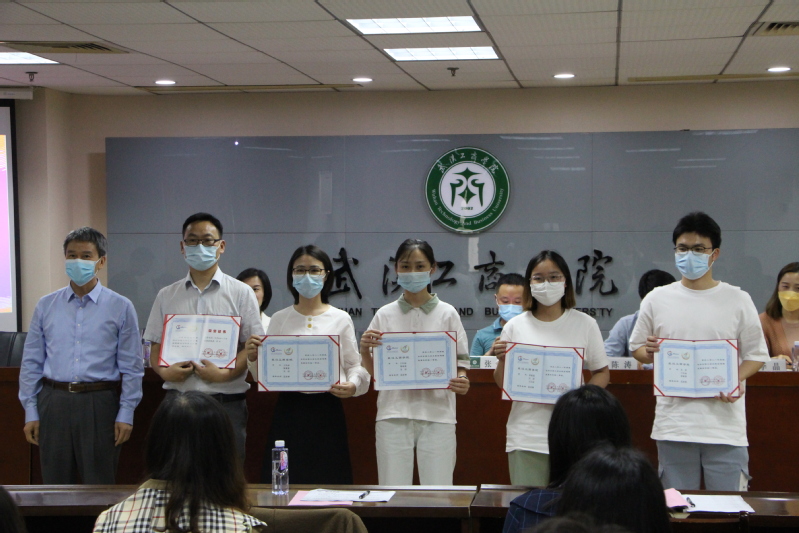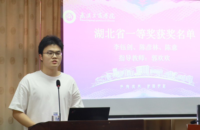 朱威书记首先介绍了学校数学建模团队参加历年数模竞赛取得的成绩。“从2006年到2021年,学校学生参加全国大学生数学建模竞赛,荣获国家一等奖3项(本科组1项、专科组2项),二等奖6项,省级奖项57项;2018年学校学生走出国门,在美国大学生数学建模竞赛大放异彩,获得一等奖1项、二等奖3项。”随后,他宣读了“2021年全国大学生数学建模竞赛”学校获奖名单:吴滔、王弘丽、屠霜茹荣获“全国一等奖”;李钰剑、陈彦林、陈意获得“湖北省一等奖”;徐清园、周宇、查妤婕等学生获得“湖北省三等奖”;程斌老师荣获“优秀组织奖”。孔建益校长、张俊副校长和教务部副部长陈涛为获奖师生颁奖。