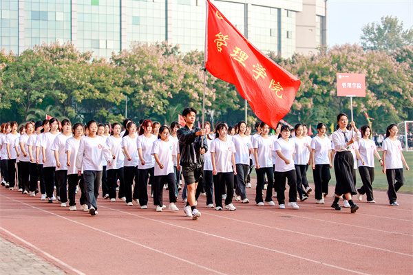 来自各学院的学生以及教职工代表队身着精心设计的服装依次入场,他们英姿飒爽、精神饱满,迈着铿锵有力的步伐来到主席台前,通过交谊舞、啦啦操、现代舞等各具特色的表演展现各自的风采。