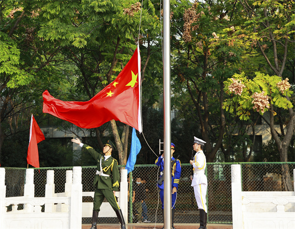 图为国旗护卫队正在升旗 摄影:王梓喆