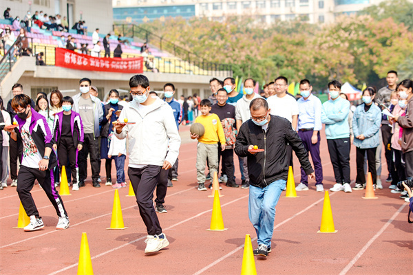 “老师,我们在终点等你”“老师,你刚才好厉害啊”……在托球、运球绕杆跑比赛现场,不少学生为老师加油,比赛结束后还有学生贴心地递上买好的矿泉水、擦汗的纸巾等,师生互动的画面十分温馨。