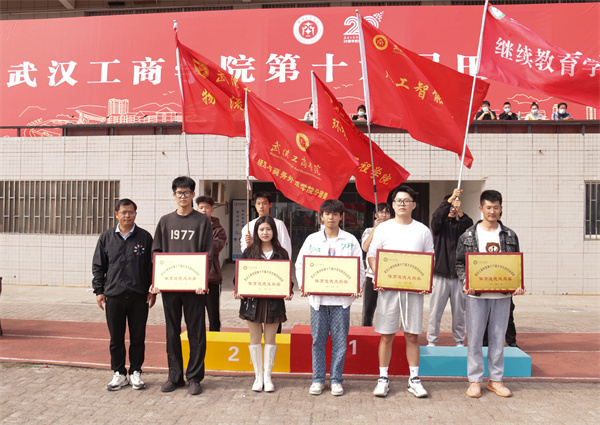 图为经外学院、物流学院、人工智能学院、环生学院、继教学院荣获体育道德风尚奖 摄影:江秋艳