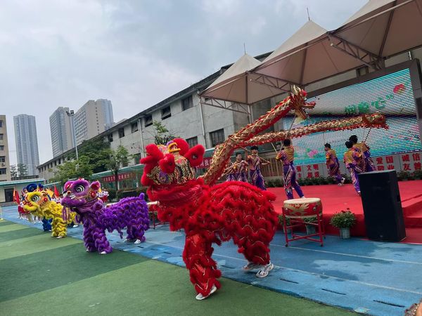 活动现场,伴随着铿锵有力的锣鼓声,龙狮队员的表演惟妙惟肖,龙狮栩栩如生,时而飞腾跳跃,时而盘旋绕柱变幻出不同造型,赢得了在场师生的热烈掌声和啧啧称赞。