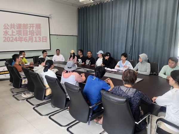 到达目的地后,在唐安水上运动俱乐部会议室,课部党总支副书记海鹏主持并召开了水上项目安全注意事项,接着大学体育教研室副主任尹勤操强调了安全事宜及服从教练指挥和安排。