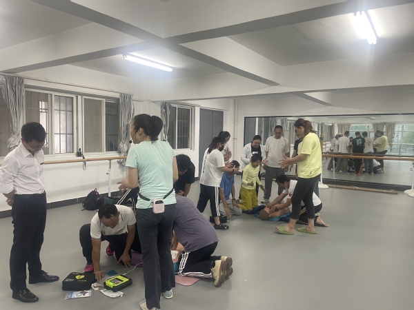 “今天所有人都必须通过考核!”培训接近尾声时,两位导师开始逐一检查教师们的操作情况。从环境评估到AED使用,从按压频率到除颤配合,每一个环节都严格把关。最终,21名教师全部顺利达标,这场在暴雨中坚守的“生命课”,不仅让教师们掌握了急救技能,更在大家心中种下了“人人都是第一响应者”的责任种子。