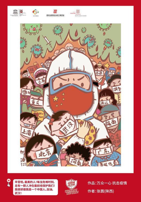 长江日报-长江网2月21日讯(记者韩玮 通讯员蒋群)2月1日起,武汉设计产业促进中心联合湖北省包装联合会设计委员会和武汉市工业设计行业协会共同发起“‘战疫情,武汉能!’2020抗击新冠肺炎公益宣传设计全球征集活动”,目前已经收到来自全球的4610幅作品。据悉,第一批作品已经进驻即将投用的光谷日海方舱医院内,为那里的医护人员和患者带去信心。接下来,还将进驻更多方舱医院。