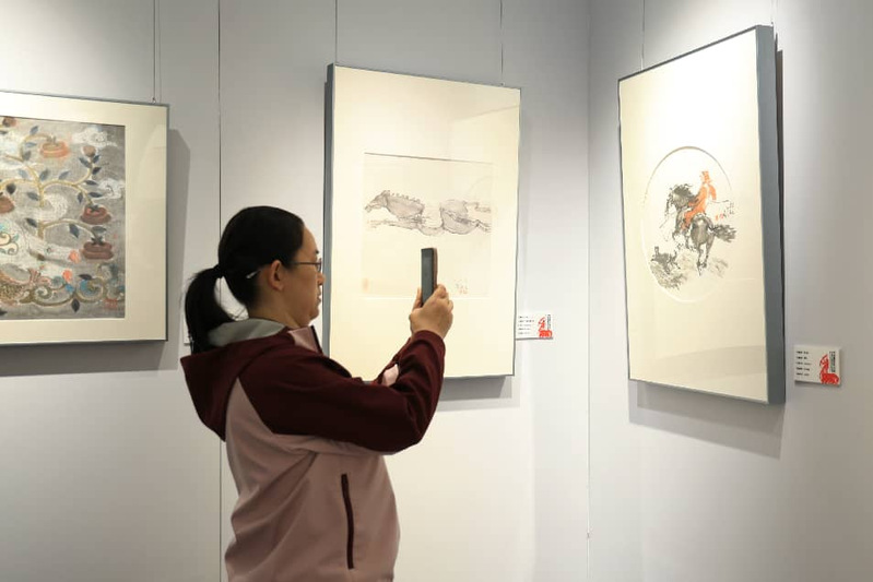 本次展览汇聚了全国118位艺术名家的精品力作,涵盖国画、油画、版画、水彩等多种艺术形式。展厅内,一幅幅骏马图或疾驰如风,或静立蓄势,笔墨纵横间尽显“龙马精神”的蓬勃气象。代表们沉浸于这场高规格的艺术盛宴中,驻足观摩,交流心得,深刻感受着中华传统画马艺术的魅力与时代创新。