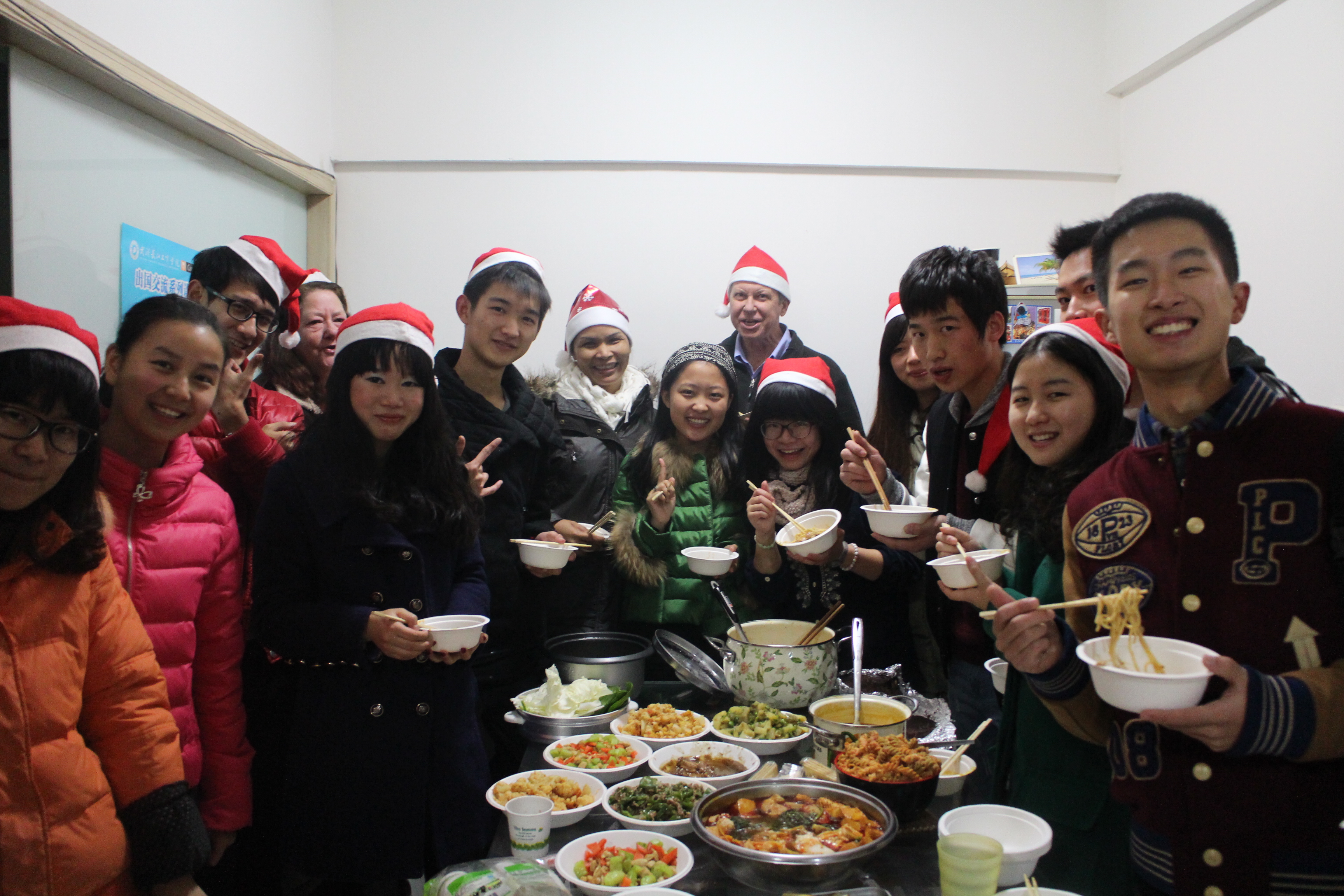 新闻中心讯(记者 刘特 见习记者 吴田芳)12月23日,圣诞节将临,为给外教过一个温暖难忘的圣诞节,武汉长江工商学院大一、大二国际班近30名学生在弘德楼1906为外教举办了一个小小的聚会。国际合作交流处副处长马冬玲、劳晶米兰老师、外教Lyle夫妇以及Judith参加此次聚会。