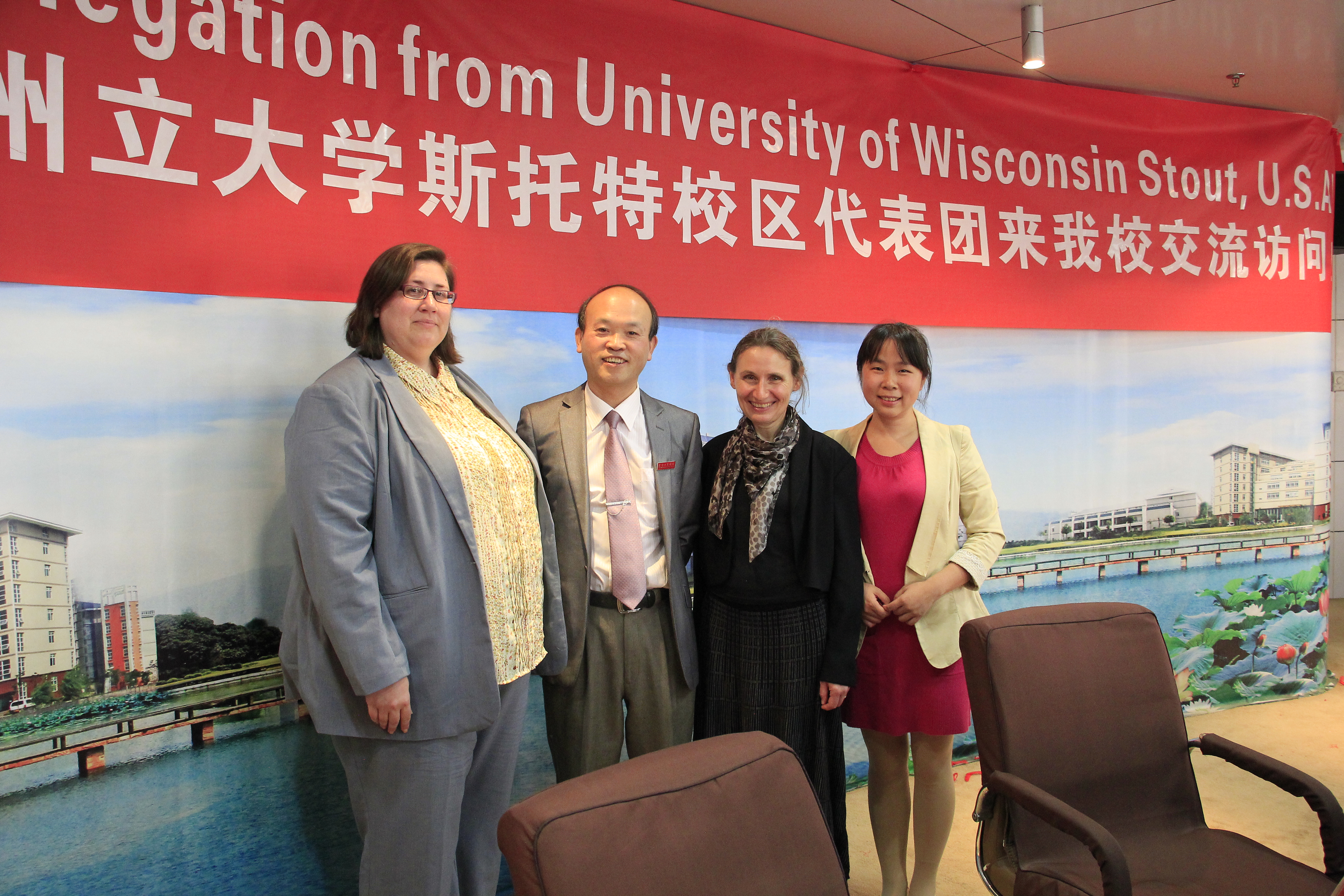 (通讯员 陈梦羽)10月27日,美国威斯康星大学托特校区代表、国际部代理主任Dr.Maria、国际部国际学生部主任Michael Lee、国际部学生部主管Chrissy Colby一行访问BB贝博艾弗森官方网站,武汉长江工商学院副校长刘腾红、国际合作交流处处长代胜桥、国际合作交流处副处长马冬玲、管理学院副院长魏华、艺术及设计学院副院长王海文、环境与生物工程学院、总支书记兼副院长邱微鹏热情接待来宾。
