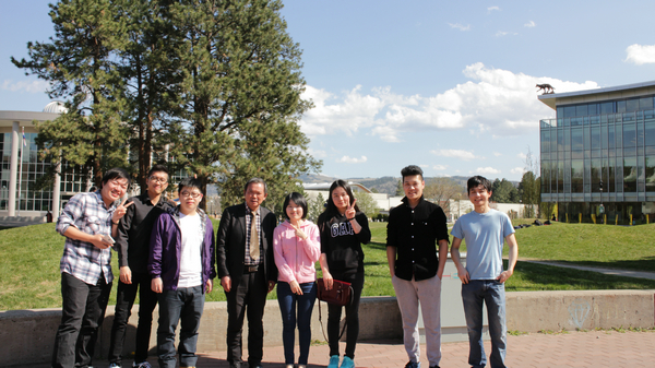 | 图为校长张金隆、管理学院院长张兆国与中加2+2旅游管理交流生合影 摄影:马冬玲 |