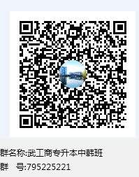 报名咨询QQ群:群号795225221,群名“武工商专升本中韩班”。