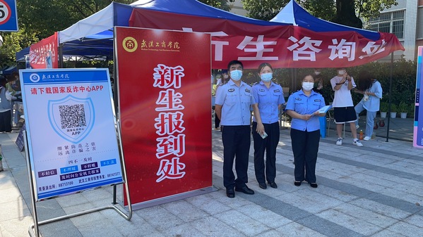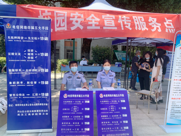 近年来,大学生被电信诈骗的案例层出不穷,学校高度重视学生生命财产安全,此次专门在校门口设置了防范电信网络诈骗宣传点,特邀洪山区青菱街派出所的工作人员进校宣讲,并在新生报到处附近设置了“国家反诈中心”APP宣传展架,校园里也随处可见防范电信诈骗的横幅,以此告诫学生们时刻提高警惕,保管好自身钱财。