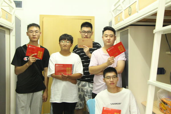 图为新生与室友们合影留念 摄影:王梓喆