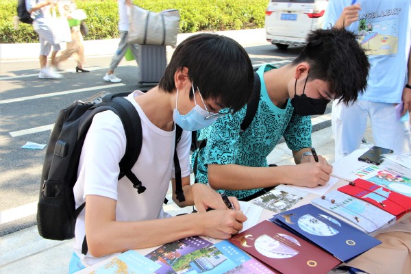 迎新现场,萌新们还在明信片上写下了自己对大学生涯的规划及梦想,并将明信片投入“未来站邮筒”,待毕业时再次开启,满怀希冀,开启大学时光。