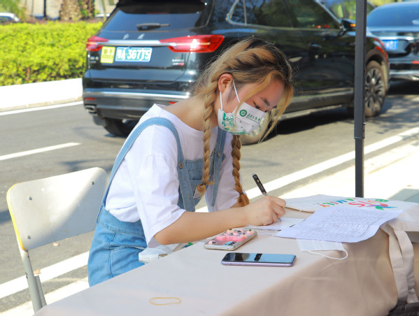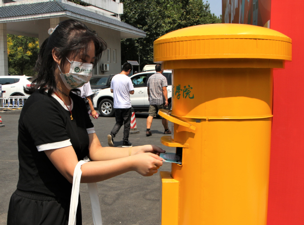 图为新生投递明信片 摄影:张世杰