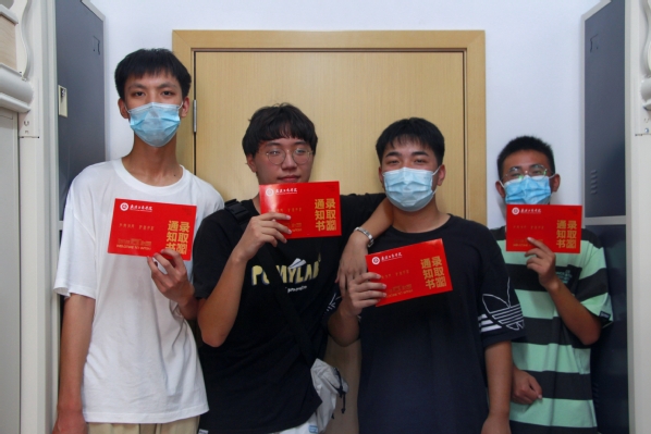 图为新生开心地晒自己的录取通知书 摄影:张誉东