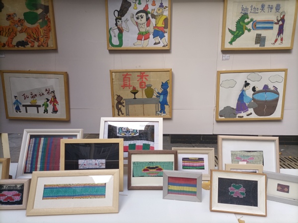 图为学生手工制作的皮影和西兰卡普 摄影:谢佳
