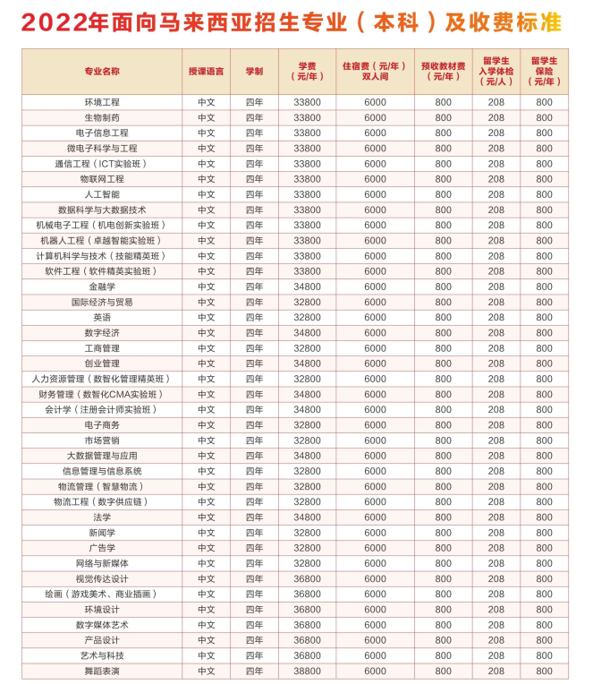 5、以上收费均为人民币, 1人民币=0.6584马来西亚林吉特(2022年6月21日汇率),实际汇率以学生缴费当日为准。