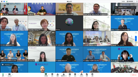 9月23日,2022年新加坡护理医科奖学金项目工作会议在线成功举办。会议围绕项目学生学习和职场发展前景的主题进行交流分享,并深入探讨项目未来高质量发展的有效路径。中国教育部高校学生司本专科招生处调研员周国良,新加坡卫生部人力规划及策略司副司长李成德,中国驻新加坡使馆教育处参赞康凯,中国留学服务中心副主任李晓哲,新加坡卫生部控股公司医疗人力部副主任阮仲文,以及来自中新双方项目院校和相关机构的60余位领导和负责老师通过视频方式参与会议。