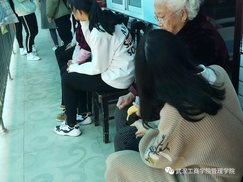 上午9:30志愿者们到达养老院,在我校志愿者到达之前武科大及其他社会公益组织也在这里关爱老人,奉献自己的爱心。