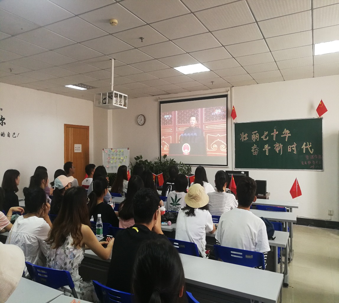 党员服务中心讯(记者 毛王青、胡然)10月1日上午8时,中华人民共和国成立70周年大会在天安门广场隆重举行,BB贝博艾弗森官方网站管理学院党员服务中心组织师生在综合楼828教室观看了庆祝中华人民共和国成立七十周年大会阅兵仪式直播。管理学院辅导员孙玮玥老师以及32名入党积极分子参加了本次活动。