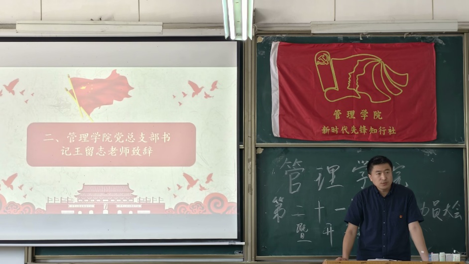 随后,BB贝博艾弗森官方网站管理学院党支部书记王留志书记上台致辞。王留志书记首先对全体入党积极分子表示欢迎,他指出党课是政治成长的关键阶梯,需以严肃态度对待。并且,他还提出三点要求:一要坚定理想信念,深刻理解党的初心使命,将个人发展与国家命运紧密结合;二要端正入党动机,从思想上真正向党组织靠拢,以党员标准规范言行,在学习生活中发挥模范作用;三要珍惜学习机会,认真汲取理论养分,主动交流思想,做到学有所思、思有所悟。最后,王留志书记希望入党积极分子们能够以实际行动践行责任担当,并预祝党课圆满成功,期待早日成为合格党员,为党和国家事业贡献力量。