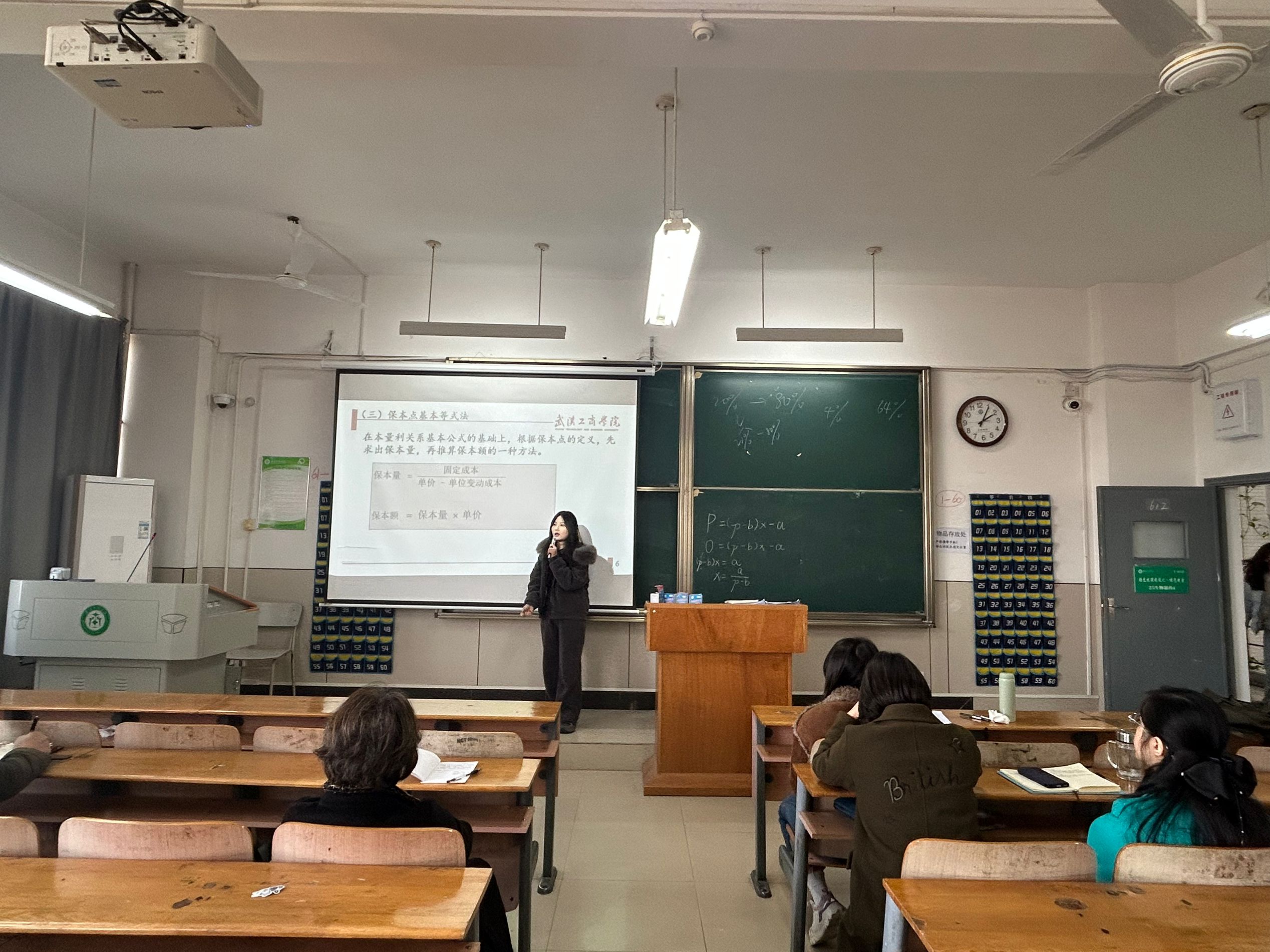 杜倩倩老师讲授《本量利分析》,通过典型案例引导学生理解成本、销量与利润之间的关系,万玲莉督导在点评中充分肯定其教学内容设计,同时指出讲解节奏稍快,建议适当放缓以便学生更好消化。