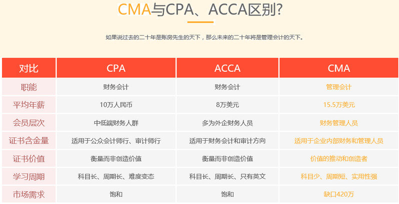 CMA与CPA、ACCA的区别