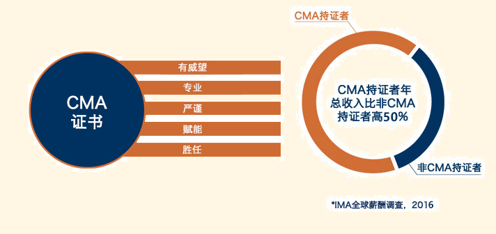 根据IMA协会在2016年进行的“全球薪资调查”发现,CMA持证者年总收入比非CMA持证者高50%
