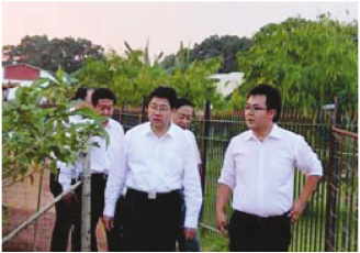 范东东(右),陪同吉林省副省长隋忠诚(左)考察援赞示范中心
