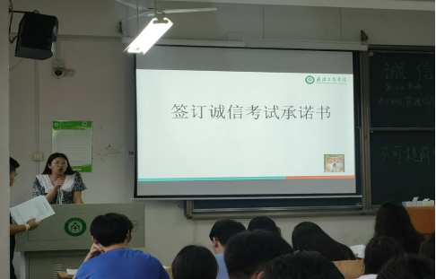 最后,童老师向全体学生发出诚信考试倡议,号召同学们提高自身道德修养,做诚信大学生;严格遵守考试纪律,做合格大学生;努力学习刻苦钻研,做优秀大学生;用知识武装头脑,通过诚信考试取得优异的成绩。在童老师组织下,大家自觉签署《诚信考试承诺书》,帮助学生进一步明确开展考风考纪教育的意义,搭建诚信迎考基石。