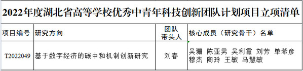 其中,学校刘春教授带领的优秀中青年科技创新团队以“基于数字经济的碳中和机制创新研究”为研究方向。该方向以数字经济下的碳排放为研究对象,重点探究数字经济驱动下的低碳产业发展的机制与效应、碳足迹的时空演变及驱动机制,以及碳交易政策对数字化产业碳排放的空间溢出效应。该团队依托现代物流与商务湖北省协同创新中心,以及“十四五”湖北省高等学校优势特色学科(群)“数字商务与管理”和“资源环境与智能化工程”,长期追踪商务服务业的发展,在前期做了大量卓有成效的研究工作。