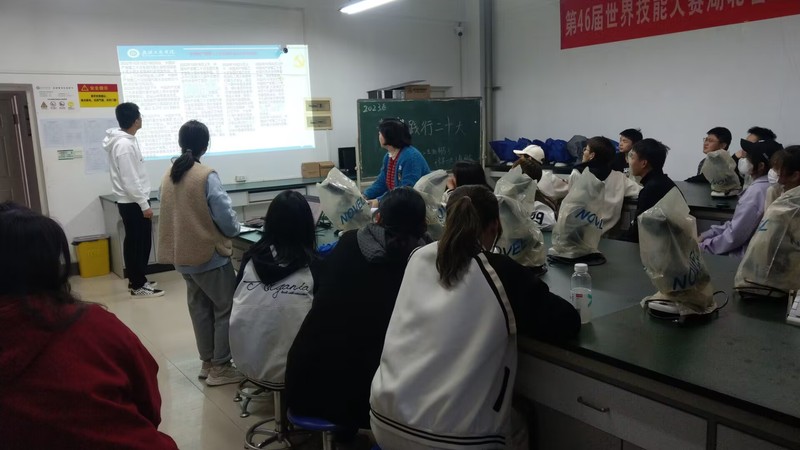 班会结束后,同学们纷纷表示要把“自信自强、守正创新,踔厉奋发、勇毅前行”的二十大精神体现在上好每一节课、完成好每一项作业、做好每一节实验,以实际行动担当青年责任。