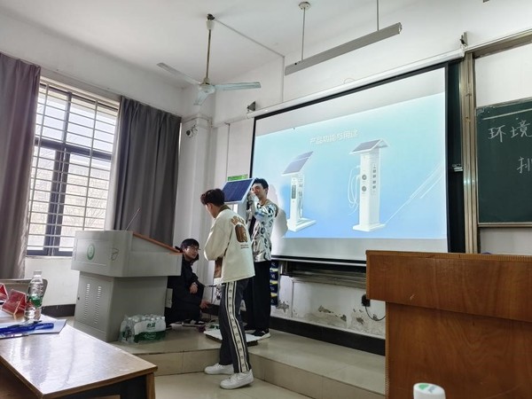 答辩会上,各参赛团队分别就自己的项目进行了详细的汇报和展示。项目涵盖科技创新和未来产业、乡村振兴和农业农村现代化、城市治理和公共服务、生态环保和可持续发展及文化创意和区域合作等领域。通过汇报展示充分体现了环生学院学生在学术研究和社会实践方面的广泛兴趣和扎实实操能力。最终,在参赛的25支队伍中评选出9个参赛项目进入最终的校赛。参赛队伍不仅展现了自己的项目计划,更有不少团队展示了项目落地且可商业化的产品实物。在提问环节,评委老师针对各团队的项目答辩指出了存在的个性问题,并给出了宝贵修改意见和建议,帮助参赛学生完善修改路径。